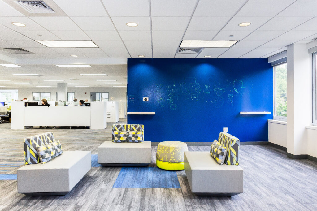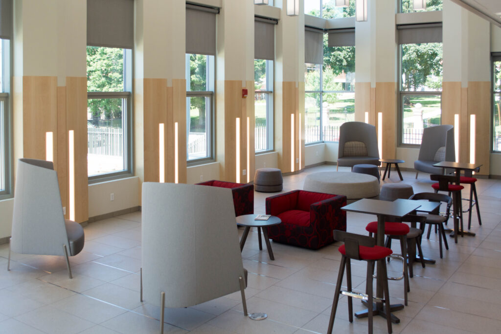 Creating contemporary spaces for students and staff to dine, work, and lounge. Anna Maria College is a small college nestled in the New England town of Paxton, MA. The college’s amenities have not been updated or renovated for a long time. Workplace Resource was approached by Cutler Associates to recreate the dining hall and staff…